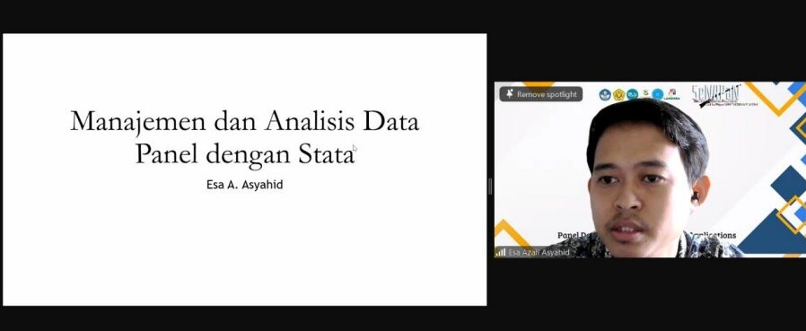 Seminar ini menghadirkan dua narasumber ahli, yaitu Dr. Evy Rahman Utami, S.E., M.Sc dari Program Studi Akuntansi FEB Universitas Muhammadiyah Yogyakarta dan Esa Azali Asyahid, S.E., M.Sc dari Program Studi Ilmu Ekonomi FEB Universitas Gadjah Mada, serta dimoderatori oleh Dr. Gideon Setyo Budiwijaksono, M.Si dari Program Studi Akuntansi FEB UPN “Veteran” Jawa Timur. Dalam pemaparannya, para narasumber menjelaskan konsep dasar dan penerapan berbagai model analisis data panel seperti Fixed Effects Model (FEM), Random Effects Model (REM), dan Generalized Method of Moments (GMM), lengkap dengan demonstrasi penggunaan perangkat lunak statistik seperti Stata dan EViews.